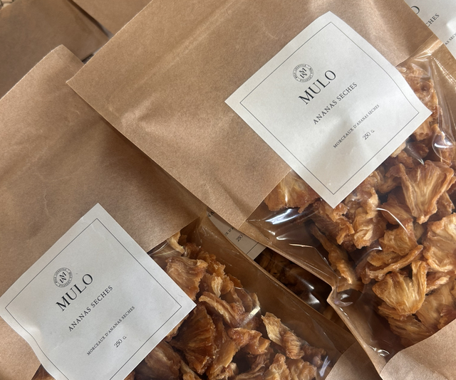 • Sans additifs ni conservateurs : Lorsqu’il est séché naturellement, l’ananas Pain de Sucre conserve toutes ses saveurs et bienfaits sans ajout de sucre raffiné.
